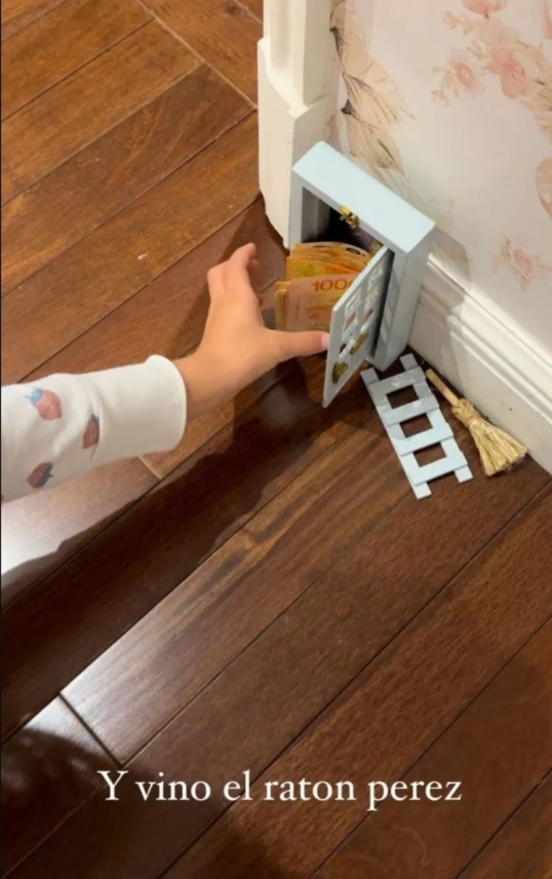 En el interior, asomaban varios billetes de mil pesos argentinos doblados. “Y vino el ratón Pérez”, se lee en el texto que acompaña la historia de Instagram.