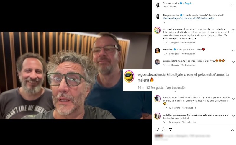 A los comentarios de “emoción” y “alegría” se sumó una particular de la cuenta @elgoatdecadencia: “Fito, dejate crecer el pelo, extrañamos tu melena”.