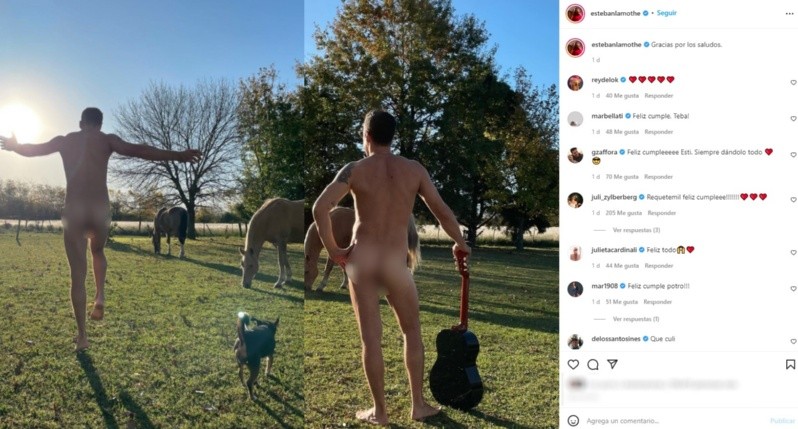El último sábado, el Esteban Lamothe cumplió 45 años y lo celebró al desnudo. El actor posó con toda la piel para la cámara durante el festejo en el campo y rodeado de animales.