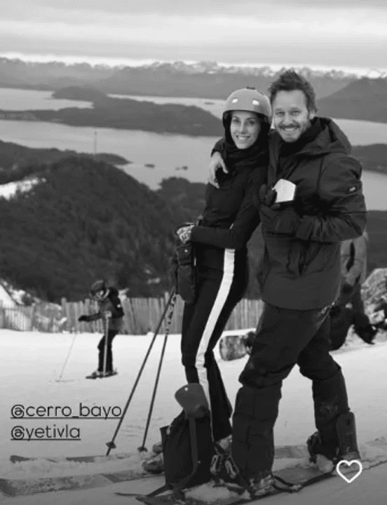El que está en el mismo lugar disfrutando de la nieve es Benjamín Vicuña, padre de los tres varones de la modelo y expareja, con quien mantiene un muy buen vínculo y a quien defendió recientemente en público, tras el ataque de la China Suárez.