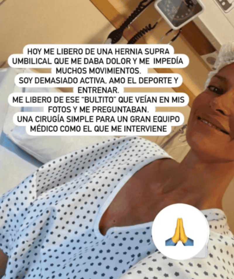“Hoy me libero de una hernia supra umbilical que me daba dolor y me impedía muchos movimientos”, explicó la hermana de Silvina Escudero en su cuenta en las redes sociales. Y sumó: “Soy demasiado activa, amo el deporte y entrenar”.