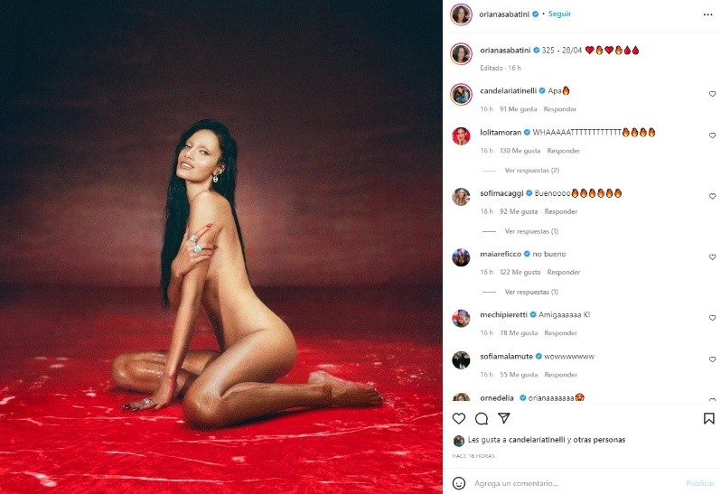 Oriana Sabatini avisó que tiene nueva canción con una publicación al desnudo. En el posteo, la cantante y actriz explica que la captura es parte de su nuevo videoclip.
