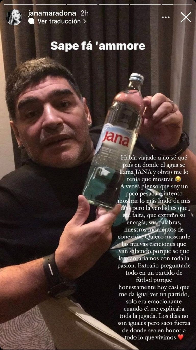 Finalmente Jana decidió usar sus redes para manifestrar sus sentimientos. La joven compartió una foto de Diego con una botella de agua de una marca que lleva su nombre.