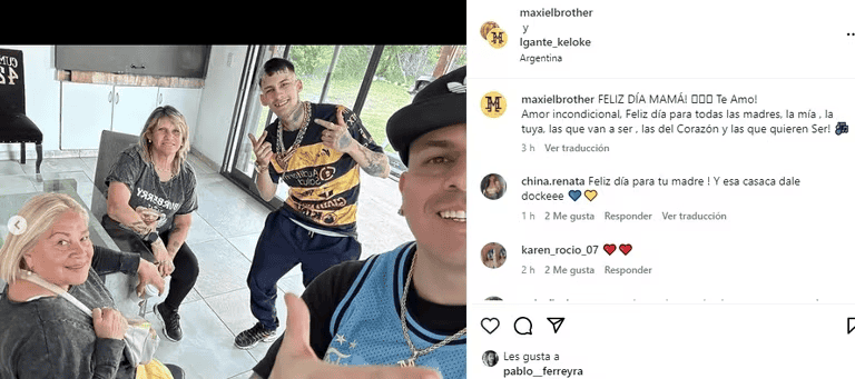 L-Gante también aprovechó la ocasión para agasajar a su mamá, Claudia Valenzuela. "¡Feliz día mamá. ¡Te Amo! Amor incondicional. Feliz día para todas las madres, la mía, la tuya, las que van a ser , las del Corazón y las que quieren Ser!", escribió el cumbiero.