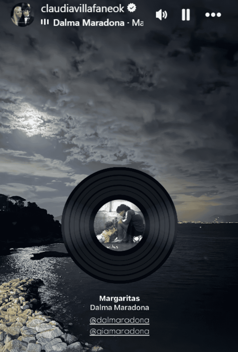 Acto seguido, musicalizó la misma foto con una canción de Dalma llamada "Margarita" por la icónica foto de Diego y su hija.