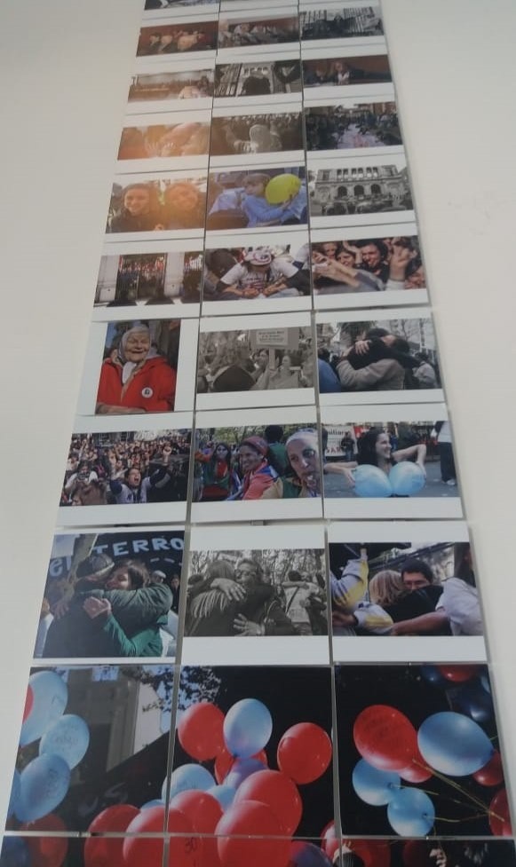 "Estas fotografías -continúa el texto- irán cambiando con el tiempo, se sumarán nuevas imágenes, algunas se convertirán en postales para que las lleves y las compartas. La propuesta es hacerlas viajar, pasarlas de mano en mano, enlazarlas unas junto a otras para construir en el presente una memoria visual colectiva de un proceso histórico de justicia y verdad".