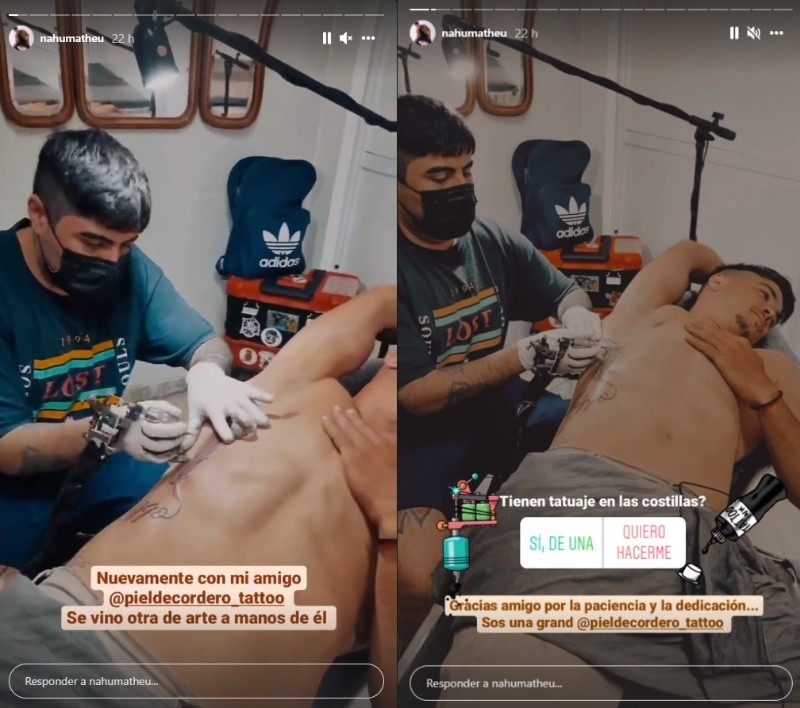 "Logramos el objetivo de terminarlo, fue duro en las costillas, eh", escribió sobre el video en el que Nahuel conversa con su tatuador.