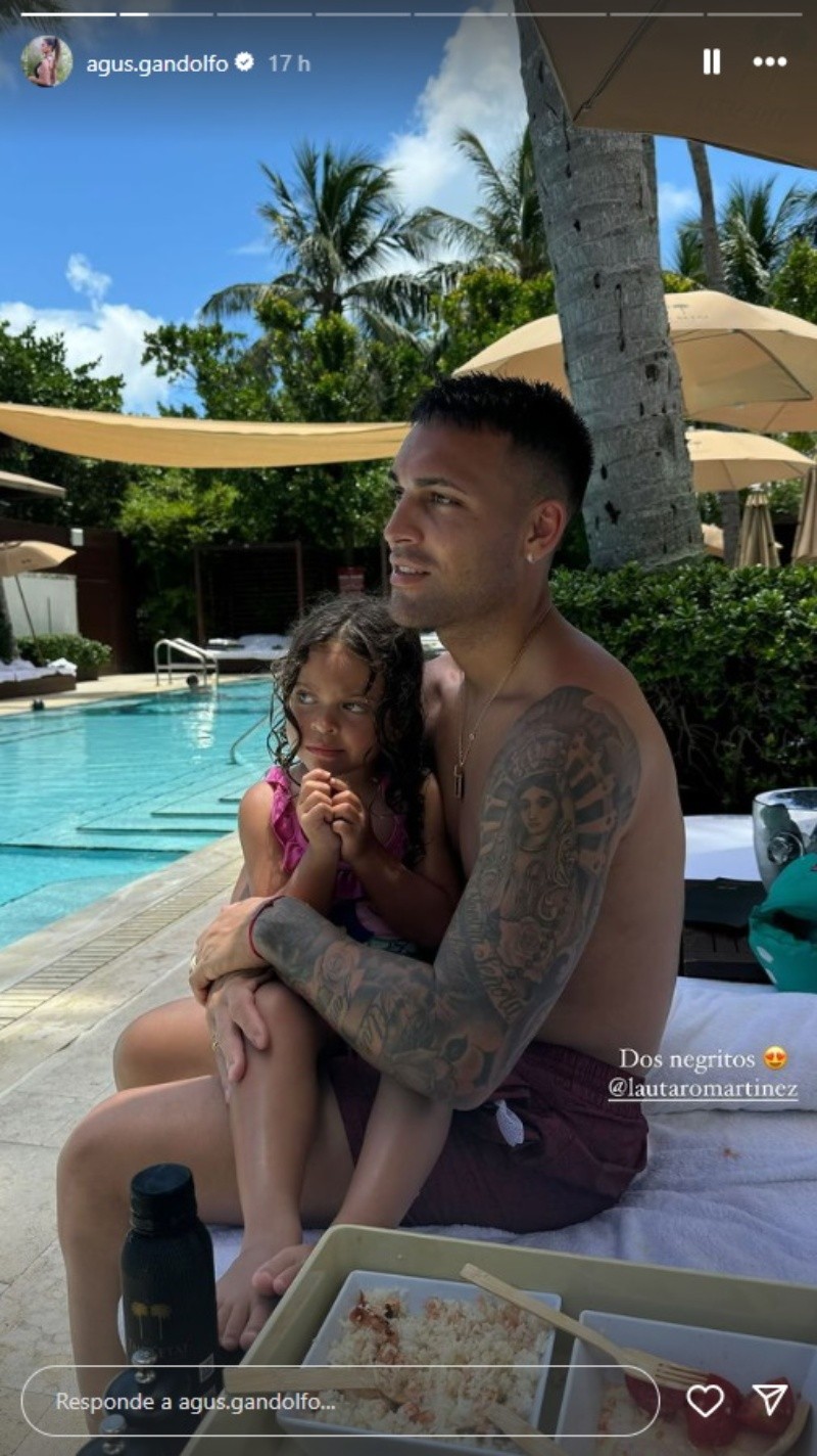 Gandolfo, que también es dueña del restaurante Coraje en Milán (Italia), publicó una historia donde se lo puede ver al delantero del Inter junto a su hija Nina, de tres años, acompañada la frase "dos negritos".