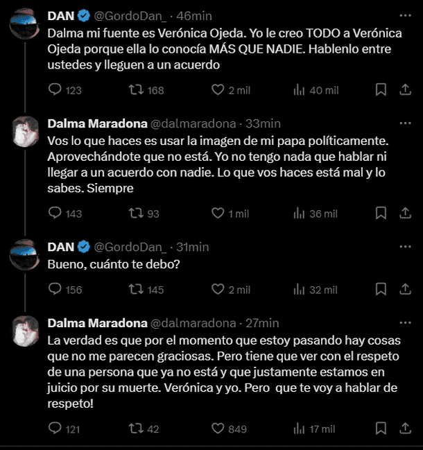 "Vos lo que hacés es usar la imagen de mi papá políticamente, aprovechándote de que no está. Yo no tengo nada que hablar ni llegar a un acuerdo con nadie. Lo que vos haces está mal y lo sabés. Siempre", remató la hija de Claudia Villafañe.