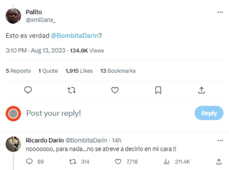 Lo cierto es que poco tardó el posteo en viralizarse y fue el propio Darín quien desmintió la versión y respondió sin filtros: "¡No, para nada. No se atreve a decirlo en mi cara!"