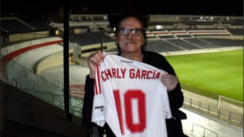 “El maestro en casa” escribió el Millonario en sus redes sociales, compartiendo una imagen de la visita de Charly al estadio. En la imagen de lo ve al músico sonriendo, con una camiseta en sus manos que lleva estampado el número 10 y su nombre y apellido.