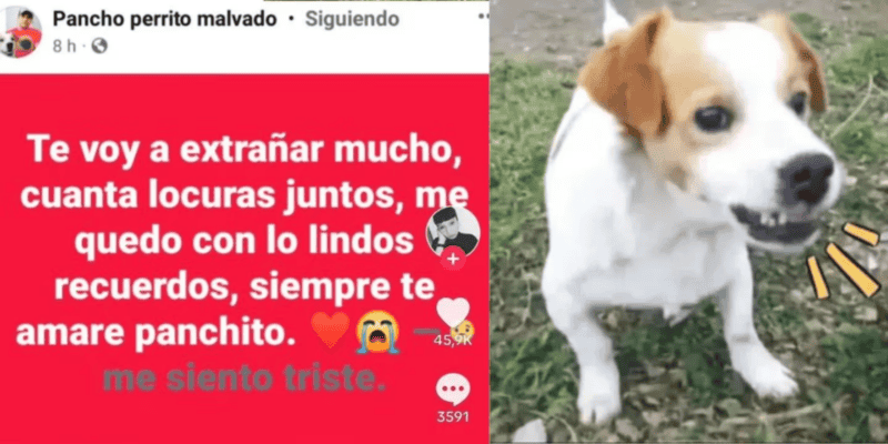 En los últimos días, se conoció la muerte de Pancho, más conocido como "Perrito Malvado", que se hizo famoso dentro del mundo de TikTok y su partida todavía duele. La cuenta que se llama @panchoperritomalvado777 en varios videos superó el millón de visualizaciones y se lo podía ver al animal con su dueño quien le cantaba canciones y llegaba al punto de hacerlo enojar.