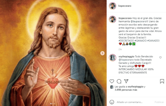 Este lunes, Lio pecoraro tendrá su intervención quirúrgica y recibirá su médula ósea. Compartió un emotivo mensaje en su red social: "Hoy es el gran día. Gracias hermanita Lau Pecoraro. Lleno de emoción escribo esto descargando entre lágrimas y destacando tu gran gesto de amor para darme vida! Ahora seré el benjamín de la familia. ¡¡¡Gracias, gracias, gracias!!!", expresó junto a una fotografía de Jesús y un clip de su hermana preparándose para el procedimiento.