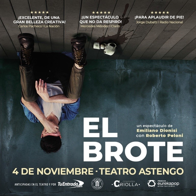 El Brote, un espectáculo de Emiliano Dionisi y protagonizado por Roberto Peloni se presentará el 4 de noviembre en el Teatro Astengo.
