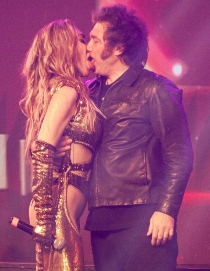 En ese contexto, Milei y Fátima sellaron su amor con un fogoso beso.