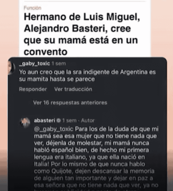 Alejandro Basteri, hermano del cantante mexicano, Luis Miguel, realizó un duro descargo para referirse a los diferentes rumores en torno al paradero de su madre, Marcela Basteri.