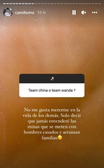 Camila evitó dar nombres pero dejó en claro que no le gusta que terceros intervengan en relaciones ajenas.