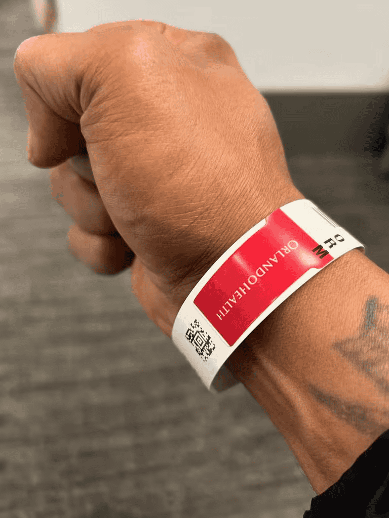 El artista compartió una imagen desde Orlando Health, una clínica ubicada en dicha ciudad de Estados Unidos, en la que se ve su mano y una pulsera roja de ingreso al sanatorio.