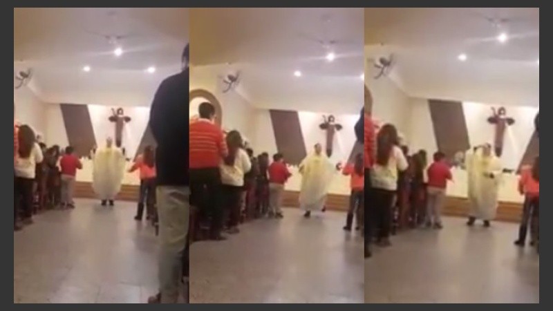 En el video, que fue filmado por uno de los asistentes y subido a la redes sociales, se puede ver al cura cantar y bailar al ritmo del tema de moda, mientras los fieles celebran la ocurrencia.