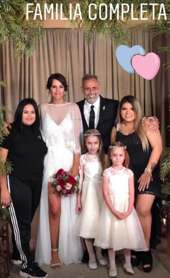 Pereiro ingresó escoltada por sus dos hijas, Violeta y Emma. Sergio Verón y Tatiana fueron los testigos de la boda por su parte. En tanto, los testigos por el lado del conductor de Intrusos fueron Beto –un amigo de larga data– y su hija Rocío.
