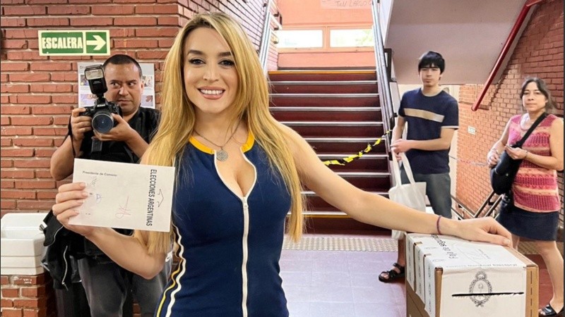 Al salir de sufragar, acompañada por el equipo de prensa del libertario, conversó con un grupo de periodistas y contó: "Mientras estaba votando, Javier me dijo que me estaba viendo. Cuando estaba metiendo el sobre en la urna, me mandó un mensaje".