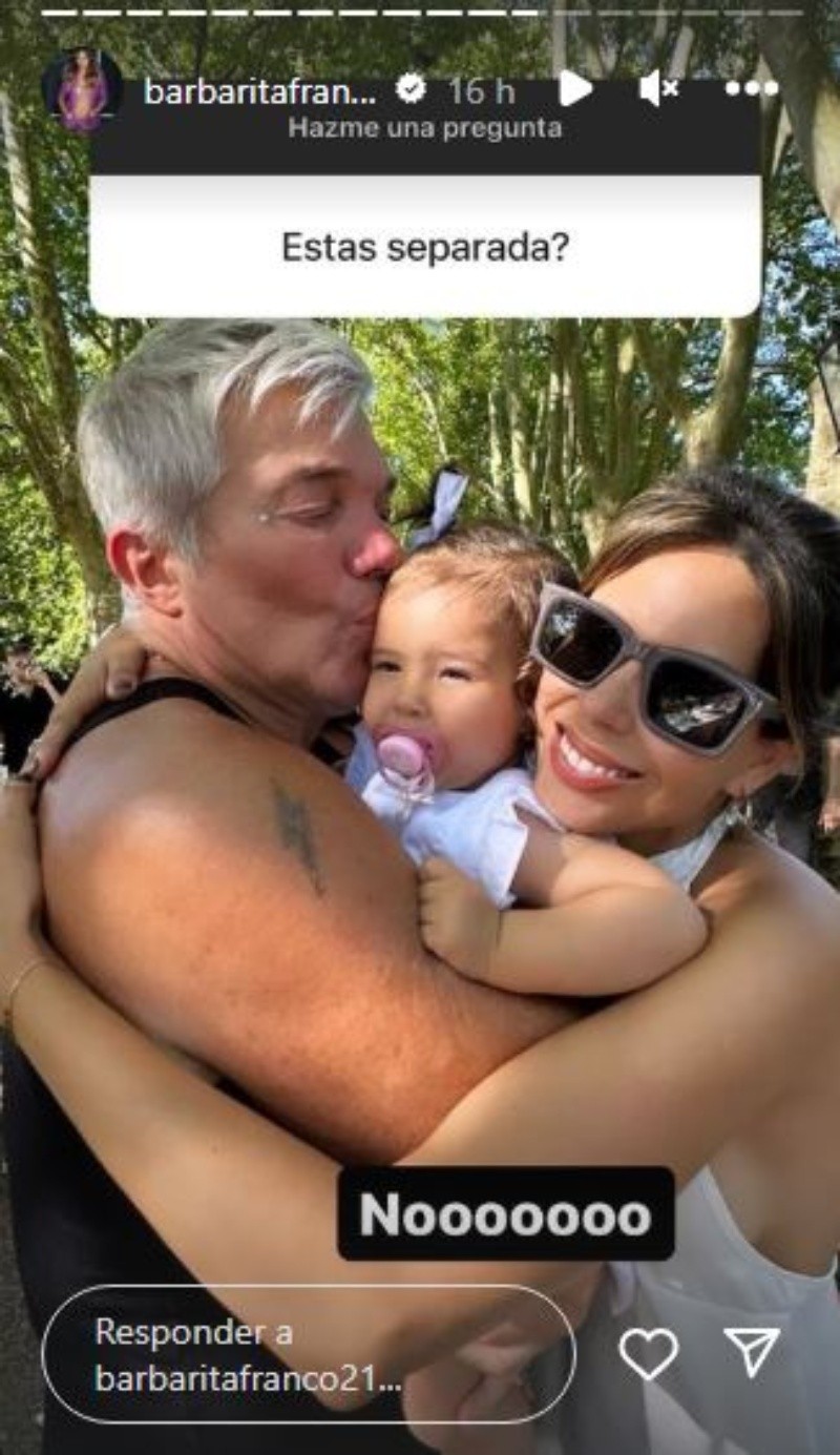 Incluso, la modelo abrió una caja de preguntas en sus historias y respondió a la duda de una seguidora que escribió: "¿Estás separada"? y la influencer respondió: "Nooo", junto a una foto familiar.