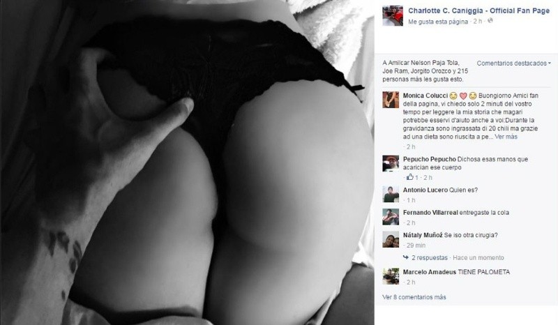 Charlotte Caniggia está otra vez el boca –y en las pantallas– de muchos y muchas. La hija de Claudio Paul y Mariana Nannis compartió en Facebook una foto de sus glúteos mientras la mano de un hombre hurga en la alta puntilla de culotte que luce.