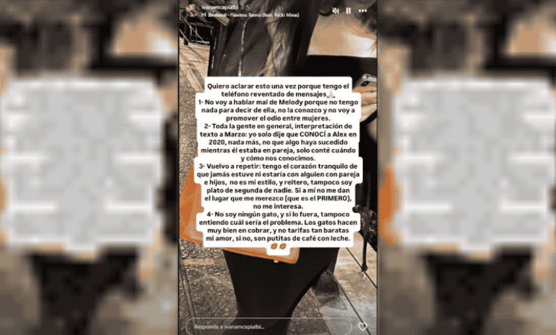 Horas después y tras el video de Melody, Cabialbi señaló: “Quiero aclarar esto una vez porque tengo el teléfono reventado de mensajes. No voy a hablar mal de Melody porque no tengo nada para decir de ella. No la conozco y no voy a promover el odio entre mujeres”.