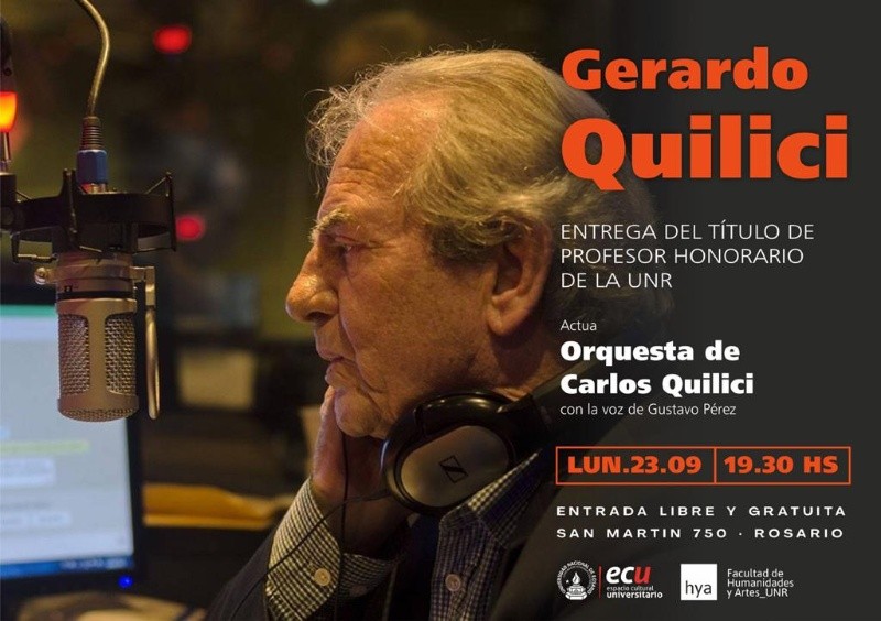 El reconocido especialista de tango y conductor de Radio 2 Gerardo Quilici recibirá este lunes una de las máximas distinciones que otorga la Universidad Nacional de Rosario (UNR), la de profesor honorario.