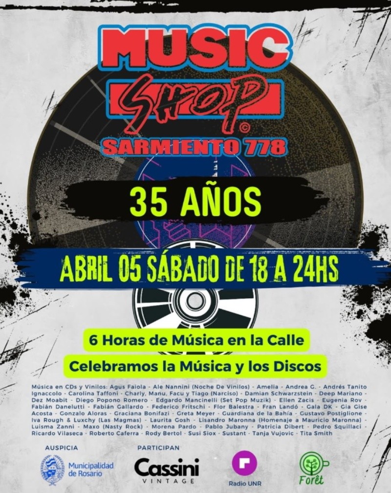 Este sábado desde las 18, en Sarmiento y Córdoba, la disquería Music Shop celebra 35 años con un evento gratuito en el que habrá música en CD y vinilo. La actividad contará con la participación de DJs y melómanos que compartirán sus canciones y artistas elegidos.