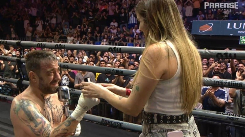 Luego de lograr el triunfo por nocaut, el cantante invitó a sus hijas y su novia y le propuso matrimonio.