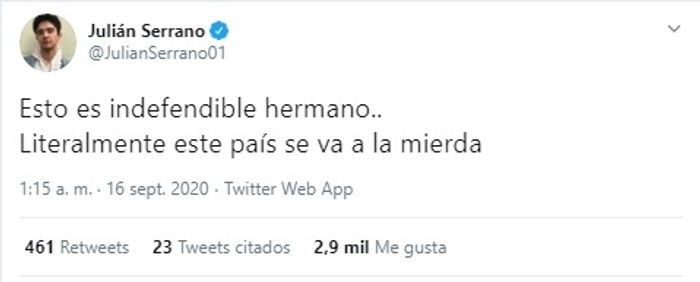 El famoso influencere Julián Serrano usó Twitter para manifestarse en contra a la última decisión del Banco Central con respecto a la moneda norteamericana y fue criticado por sus seguidores, quienes lo compararon con El Dipy.
