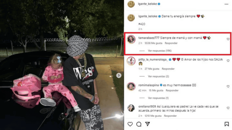 La que no se tomó muy bien la noticia de que L-Gante está saliendo con Candela fue la mamá de la hija del cantante. El artista subió una foto junto a Jamaica y escribió: “Dame tu energía siempre”. “Siempre de mamá y con mamá”, respondió Tamara Báez.