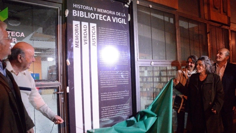 Una primera señalización se hizo en el ingreso a la parte de la biblioteca (Alem 3078), en 2015, y ahora se realiza una actualización, porque en 2020 se conocieron las condenas a prisión perpetua de la causa Feced III y IV de los juicios de Lesa Humanidad, del que fueron detenidos ilegalmente ocho miembros de su entonces comisión directiva. Al día de la fecha, veinteseis socios, empleados, docentes, cooperadores y estudiantes de La Vigil se encuentran en condición de asesinados o continúan desaparecidos.