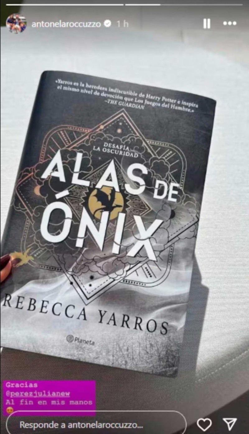 Pero más allá de esta foto del feed, Antonela publicó una historia que revela su fanatismo por la autora Rebeca Yerros, considerada como una suerte de nueva J.K Rowling, la creadora de Harry Potter.