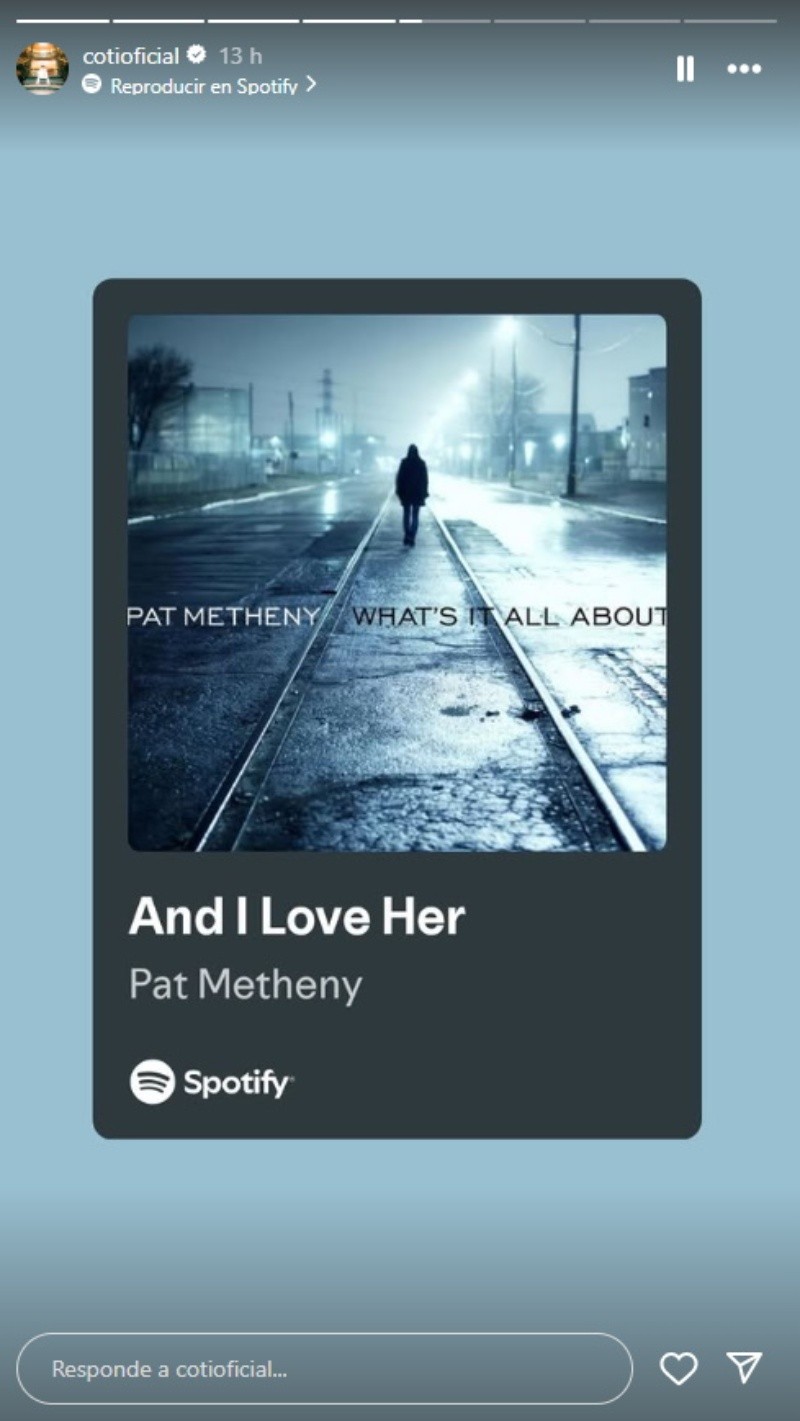 Pasa que la canción de Pat Metheny compartida por Coti es “And I Love Her”, un cover de Los Beatles.