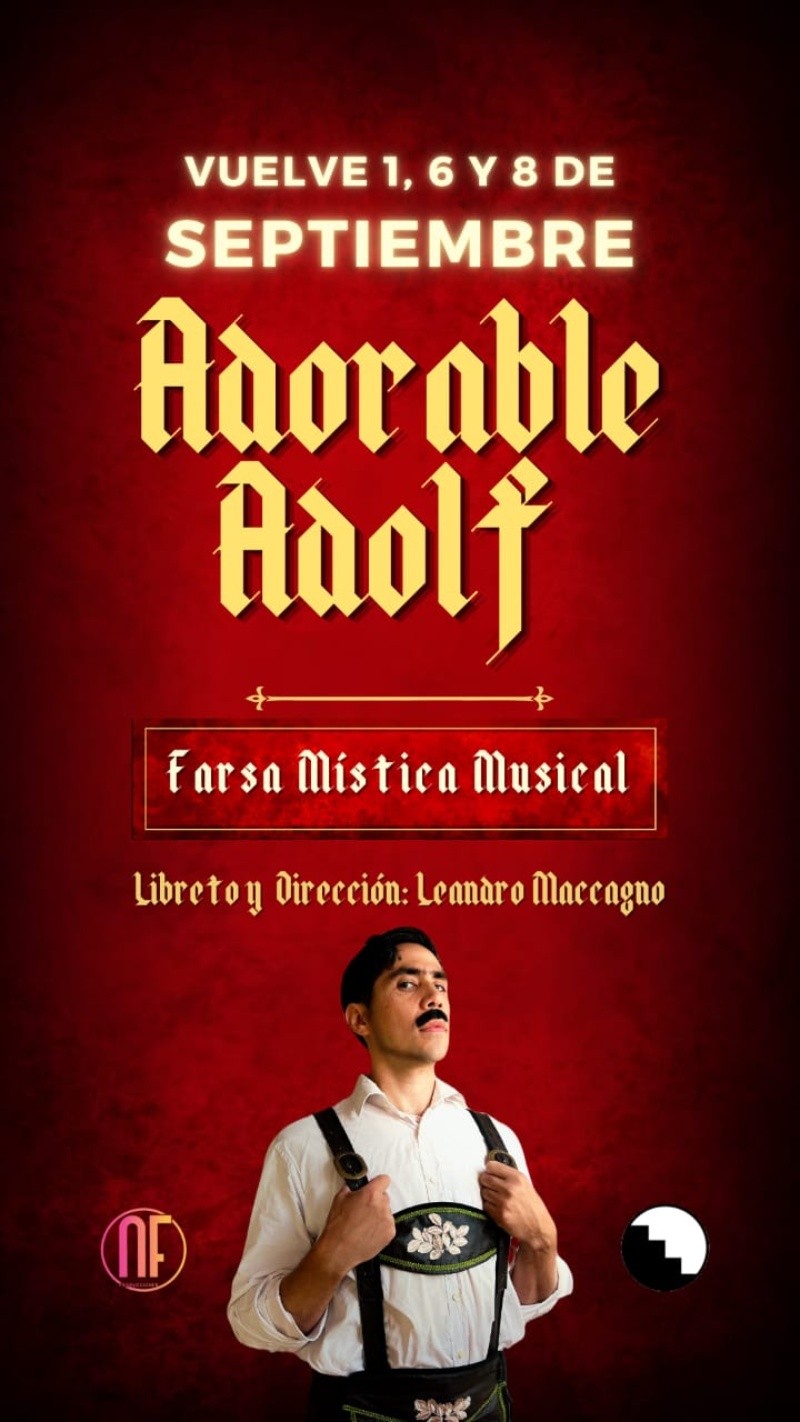 Una vez más, la obra Adorable Adolf regresa a las tablas de Rosario para sacudir emociones y despertar renovados análisis sobre un pasado presente. NyF Producciones presenta esta pieza, escrita y dirigida por Leandro Maccagno, que fuera nominada mejor comedia musical premios La Gordillo 2023, que estará en cartel por tercera temporada en el Cultural de Abajo, en Entre Ríos 579.