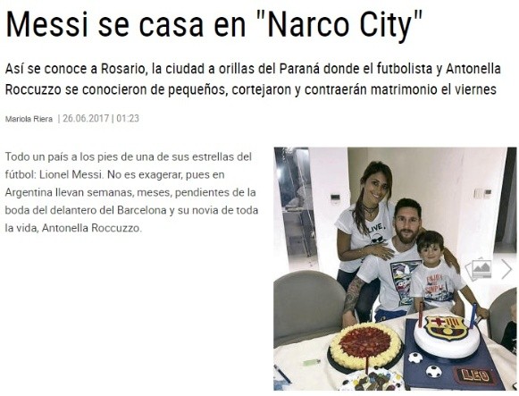 Pero aquí no termina la agitada previa del casamiento de Lionel Messi y Antonella Roccuzzo. Falta el condimento de los medios que españoles que, en tren de dar cobertura a la celebración ubicaron a Rosario en la provincia de Buenos Aires o catalogar a la ciudad como "Narco City".
