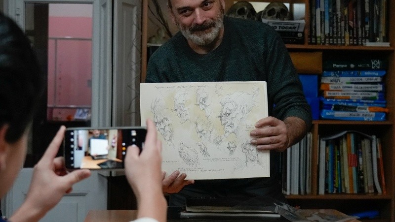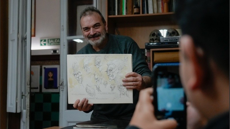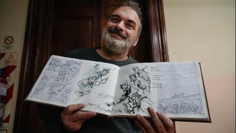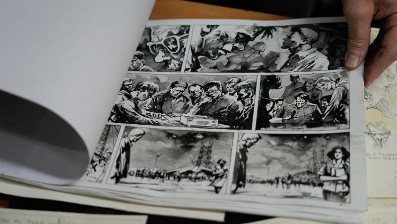 Para Barocelli, el resurgir de la posibilidad de que se publique finalmente "La Resistencia", su obra de 82 páginas que relatan el cierre de El Eternauta I, es una cuenta pendiente a cumplir a rajatabla, aunque sabe que no depende de él. Pero también, es como volver a otra etapa de su vida, a la del joven ilustrador de cuentos para editoriales del mundo, antes de hacer historietas. “Todos teníamos una expectativa por la serie del extraterrestre que no sabíamos cómo cómo iba a ser. Y salió muy bien. Entonces, bueno, todo eso genera una maquinaria que es imposible de parar, ¿viste? La rueda arrastra todo, se está volviendo a leer historietas. Llegó a Japón, número uno en Netflix. Y es algo muy lindo que se haya vuelto a hablar de historieta. porque se hablaba de cómics, de manga, pero esto pone el tapete de la historieta argentina que fue pionera en el mundo”, aseguró. Entonces recordó aquellos tiempos: “Lo dibujé hace casi 20 años, del 2007 al 2011. Ahora veo los bosquejos y hay errores, y he corregido páginas. Algunas no me gustaron y las hice de vuelta. Pero no puedo hacer todo de cero porque si no estaría 10 años más. Como se cobraba una vez publicado, hasta ahora no cobré nada, pero lo hice con mucho placer y dedicación. Como tenía otros trabajos me llevó mucho de mi tiempo libre de ilustrador de libros de cuentos en editoriales varias”. Consultado sobre quiénes vieron su obra además de Solano López, recordó que en su momento la vio Elsa Oesterheld y le gustó, y también a Fernando (uno de los dos nietos y herederos). "Cuando aun la estaba terminando, nos conocimos en una convención, y le gustó mucho también”, sostuvo. En medio de una de las clases que brinda a adolescentes, el dibujante desplegó su obra para tomar registro fotográfico, y algunos de los alumnos abrieron grandes los ojos. "¿Puedo sacar una foto?", preguntó el más atento a la obra inédita que presenciaba: unas hojas de gramaje grueso y tamaño A3 llenas de cuadritos, y ahí estaba Salvo combatiendo extraterrestres en terrenos isleños, o dialogando con el Mano. “Dibujé todo con tinta al agua, la técnica aguada, y usaba cámaras para pensar el encuadre de cada cuadrito (como en el cine), ya que quería hacer una ilustración muy pensada, algo que actualmente no uso mucho”, detalló. El editor de entonces de El Eternauta, Javier Doeyo, le pedía que dibujara en tinta plana (para respetar el estilo de la versión de Solano Lopez). “A mí me gustaba mucho más la aguada, por eso soy acuarelista, y convencí a Solano de hacerlo así”, recordó. El resultado es un efecto muy vívido en cada escena de la aventura distópica más famosa de la historieta argentina en el mundo. A pedido de su dibujante primigenio, Barocelli respetó la fisonomía de cada personaje: “Continué sus imágenes como quería el maestro, y que la gente reconociera a Juan Salvo, a Fava.. aunque al principio les había dado mi impronta, él quería que sean iguales a los suyos. Y fui respetando todo el guion y las viñetas pre hechas que me mandaron”. En 2002, el dibujante rosarino ganó el Concurso Iberoamericano de Cómics y Animación de Buenos Aires con una historieta de guerra junto al guionista Víctor Gaite, y Solano López era jurado y los seleccionó porque le pareció muy similar a las ilustraciones que él solía hacer para distintas editoriales del mundo. Ahí fue que el autor gráfico de El Eternauta “fichó” a Barocelli. Luego en el 2003, Solano López visitó por primera vez Leyendas, la convención de historietas de Milenario Comics y la Asociación de Historietistas Independientes de Rosario en los galpones del CEC. Allí se reencontró con Barocelli y lo invitó a su casa en Buenos Aires, "para dialogar sobre algo relacionado con El Eternauta. Dejé todo lo que estaba haciendo para ir a visitarlo. Era lo que todo dibujante de historietas hubiera querido que le suceda”, recordó con felicidad. Fue así que el artista local comenzó a ser parte del universo Eternauta: “Había otros cuatro dibujantes, y sus obras (subsiguientes a El Eternauta I) se fueron publicando, y la mía que era la final y la más larga, nunca llegó a salir porque la terminé justo en la época que falleció Solano López”. Cuando fue contratado para esta proeza, Barocelli se encontraba en preparativos para su casamiento. Recordó entonces: “Hice una prueba antes de irme de luna de miel, y cuando nos fuimos, bajaba todos los días al lobby del hotel, a ver si Solano me había contestado los bocetos que le había mandado”. Con el boom de la serie, Barocelli rememora por estos meses su vida de hace dos décadas: “Me volvió a la memoria cómo en esos tiempos fui 'famoso' por una obra que aún no había publicado. Llegamos a presentar el anuncio del libro junto a Solano en el bar Olimpo de Rosario, y salía en los diarios de otras ciudades y provincias como 'el dibujante del Eternauta'. Esperemos ahora poder llevarlo a cabo”. El libro editado y publicado, que actualmente se consigue en la edición de Planeta, fue escrito por Oesterheld entre 1957 y 1959, y dibujado por Solano López. Pero después, el autor siguió escribiendo la novela en formato de prosa, la cual se publicó con entregas en la revista que dirigía, llamada también El Eternauta, de la editorial Ramírez. Siete años después, el mismo año en que comenzó la Dictadura, se publicó El Eternauta II, mientras Oesterheld permanecía oculto de la vida pública, ya a sabiendas de que era perseguido por su militancia en Montoneros. Fue desaparecido por el gobierno de Facto en 1977, al igual que sus cuatro hijas, dos de ellas cursaban embarazos, y es por eso que al salir la serie por streaming, Abuelas de plaza de mayo lanzó una campaña de búsqueda del paradero posible de sus dos nietos, y las consultas de personas que buscaban saber sus orígenes se multiplicaron. La versión llevada al cine a través de esta serie de seis c