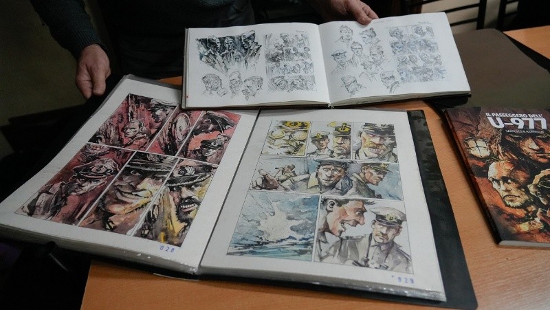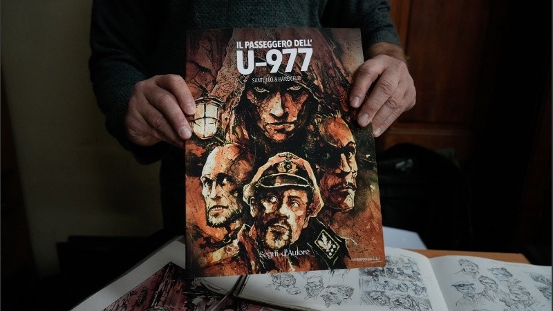 Barocelli desplegó un ejemplar en italiano del libro El pasajero del U-977, co-creado junto al guionista Rodolfo Santullo (un uruguayo que es de los mejores guionistas actuales de Latinoamerica), editado por Pictus en Argentina el año pasado. Recrea un enigmatico episodio de la 2ª Guerra Mundial en clave de terror y aventura, basado en un submarino nazi que se rindió en una base naval de Mar del Plata. Esa obra también fue editada con editoriales de Italia, Inglaterra y Estados Unidos, y está en carpeta con otra editora para Dinamarca. Ya ganó un premio Carlos Trillo de la Convención de historietas Crack Bang Boom Rosario el año pasado, y en marzo de este año ganó dos premios Cinder, el que otorgan los divulgadores, críticos y periodistas de historieta en Argentina.