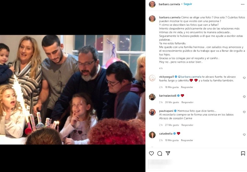 "¿Cómo se elige una foto? ¿Una sola? ¿Cuántas fotos pueden mostrar lo que viviste con una persona? ¿Y cómo se describen las fotos que van a faltar?", se lee en el posteo de Carmela.