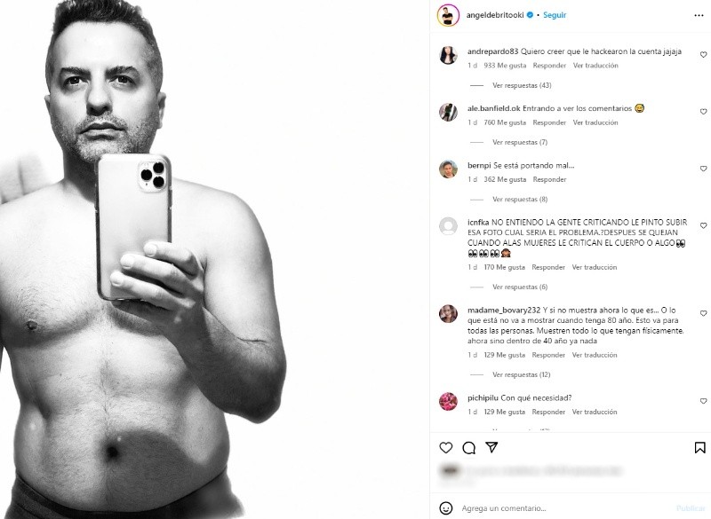 El último sábado, el periodista Ángel de Brito compartió en Instagram una foto con el torso desnudo y recibió todo tipo de comentarios.