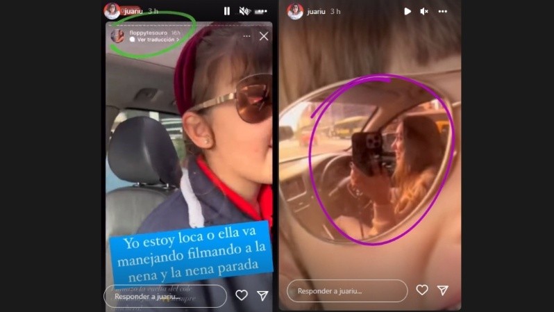 Al respecto, y enfocándose en dicho accesorio, se logra ver a Floppy en el reflejo de los anteojos: la bailarina está filmando a su hija mientras maneja y toma el volante con una sola mano ya que con la otra sostiene su celular. Además, siempre según el reflejo de la lente, se nota que ella intercambia su mirada entre lo que sucede en la autopista y Moorea, a quien mira con una sonrisa disfrutando de la secuencia.