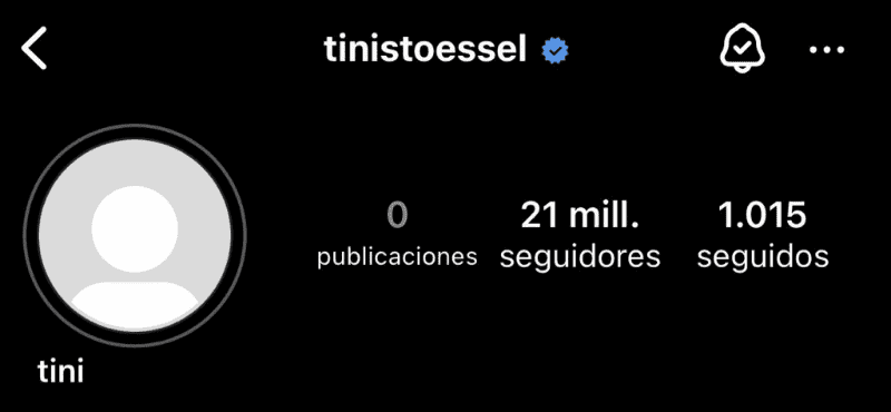 De esta manera, quienes accedan al perfil de la artista solo verán los números de seguidores y seguidos y la leyenda “Aún no hay publicaciones”.