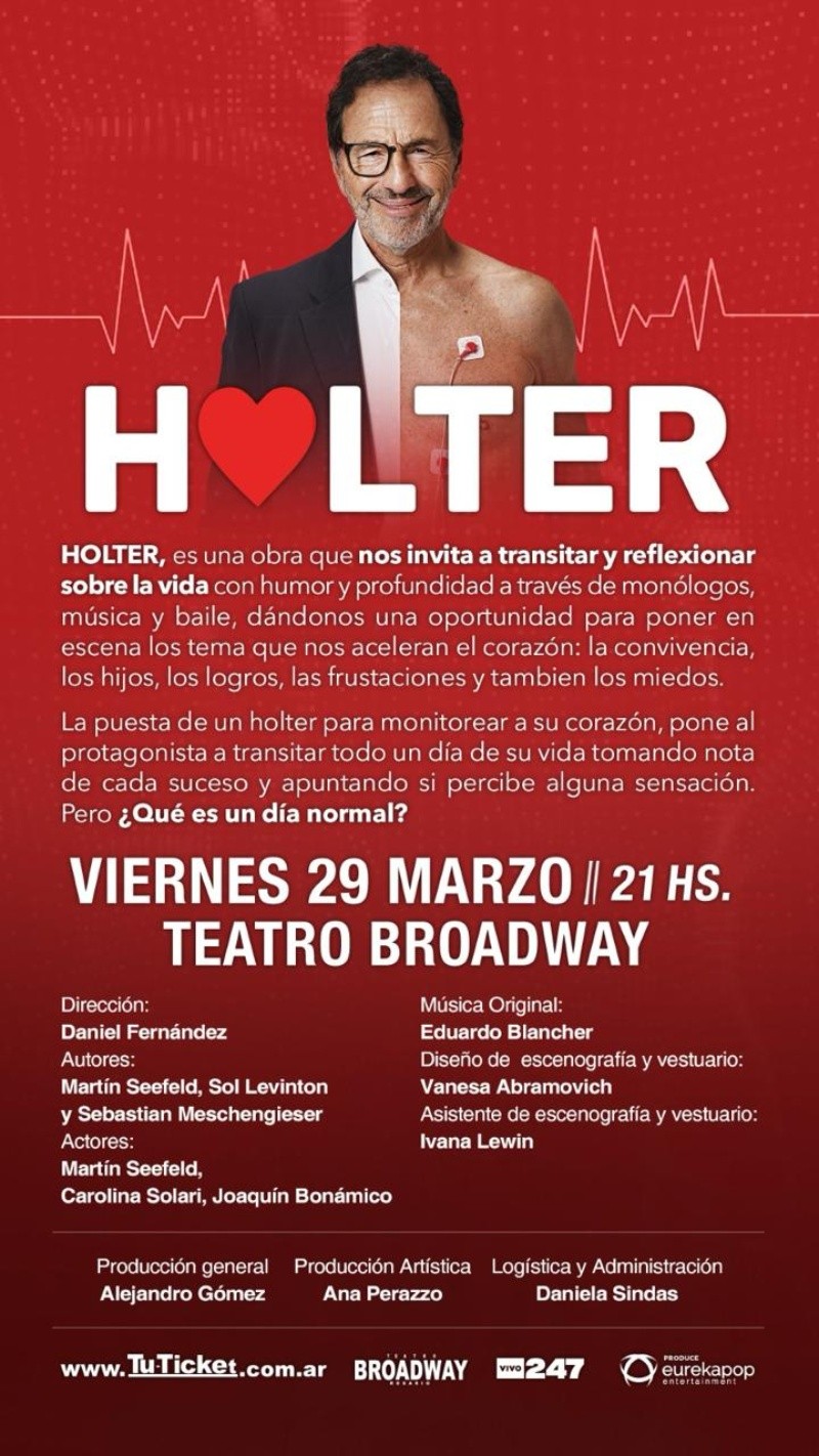 Tras su paso por Punta del Este, Mar del Plata, Córdoba y Tucumán, Holter, no es solo el corazón se presenta en Rosario. Las entradas ya están disponibles en la boletería del teatro y a través del sistema tuticket.com.ar.