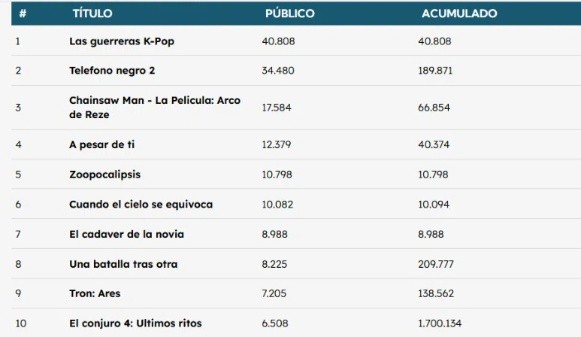 En un cierre de semana dominado por el terror de Halloween, que se celebró el último viernes, la película más vista en los cines argentinos fue la cinta animada Las guerreras K-Pop.