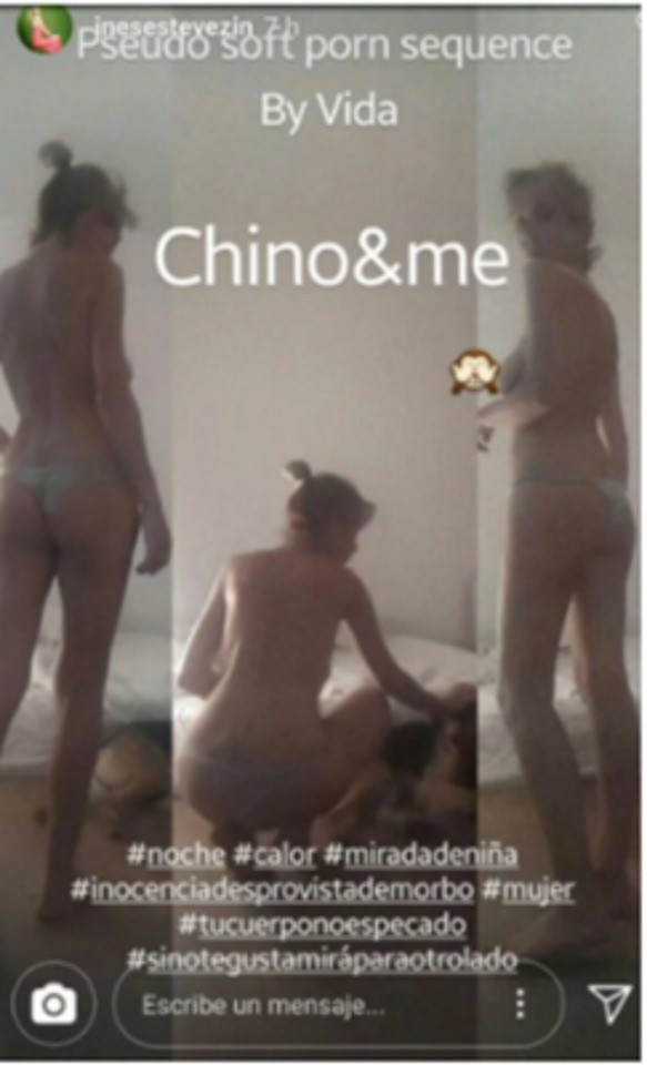La actriz y cantante Inés Estévez subió este jueves una historia en Instagram –fotos o videos que desaparecen a las 24 horas– y la tituló “secuencia pseudo porno soft”. En las imágenes, que tomó su hija Vida, se la ve a la artista en topless en su casa, jugando con su perro.