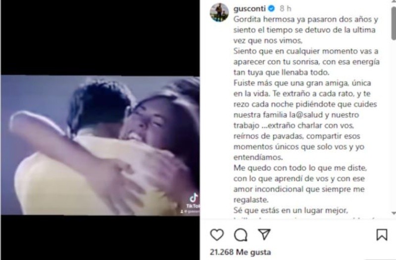 “Gordita hermosa, ya pasaron dos años y siento que el tiempo se detuvo desde la última vez que nos vimos”, escribió Gustavo en el comienzo de un posteo que conmovió a todos los que quisieron a la modelo.
