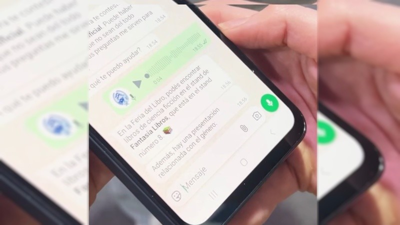 Para consultar la información sobre Feria del Libro, hay que chatear con MuniBot a través de WhatsApp (3415440147). Luego de un saludo inicial, MuniBot ofrece un menú con múltiples opciones. Allí hay que seleccionar la opción “FerIA del Libro” y se puede comenzar a chatear con Inteligencia Artificial. Desde ahí, se puede consultar libremente lo que se quiera conocer sobre el evento, con un formato conversacional como si se estuviese hablando con un agente humano. Para finalizar la conversación, es suficiente con saludar o dar las gracias.