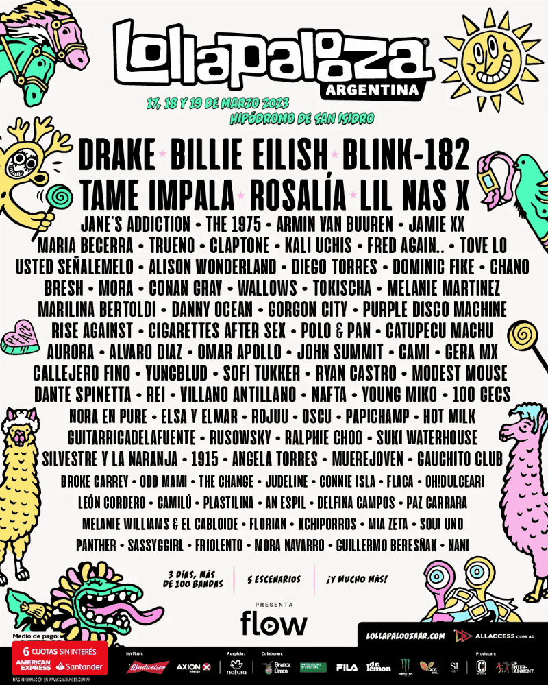 Este martes se conoció el listado completo de los artistas que participarán de la próxima edición del festival Lollapalooza Argentina 2023. Después de tanto misterio, algunos de los nombres más resonantes que pisarán el escenario son Drake, Billie Eilish y Blick-182.